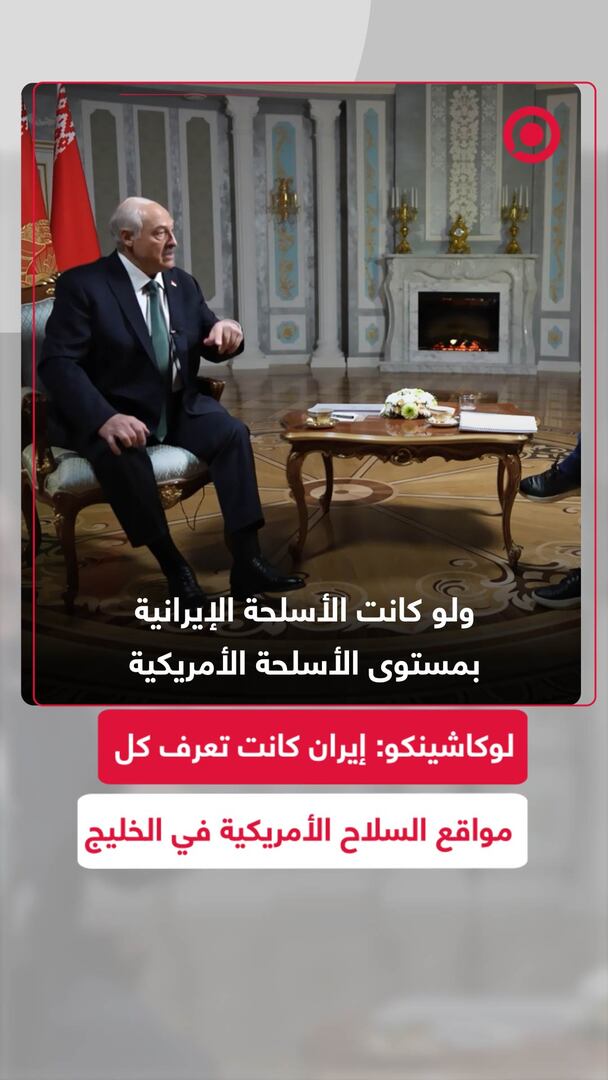 Play/Pause Mute/Unmute لوكاشينكو: إيران كانت تعرف كل مواقع السلاح الأمريكية في الخليج Save post Share Facebook X VK.com Telegram