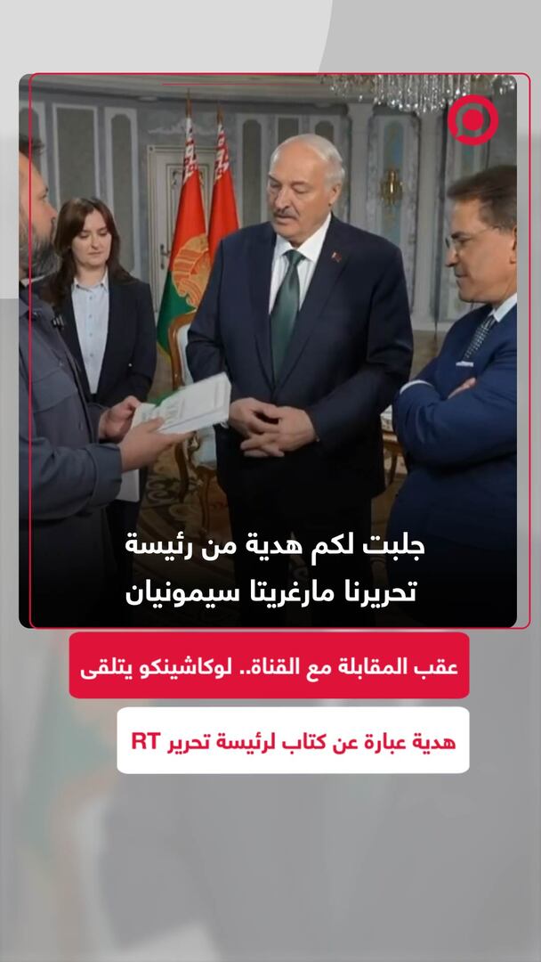 Play/Pause Mute/Unmute عقب المقابلة مع القناة.. إهداء كتاب رئيسة تحرير RT إلى لوكاشينكو Save post Share Facebook X VK.com Telegram
