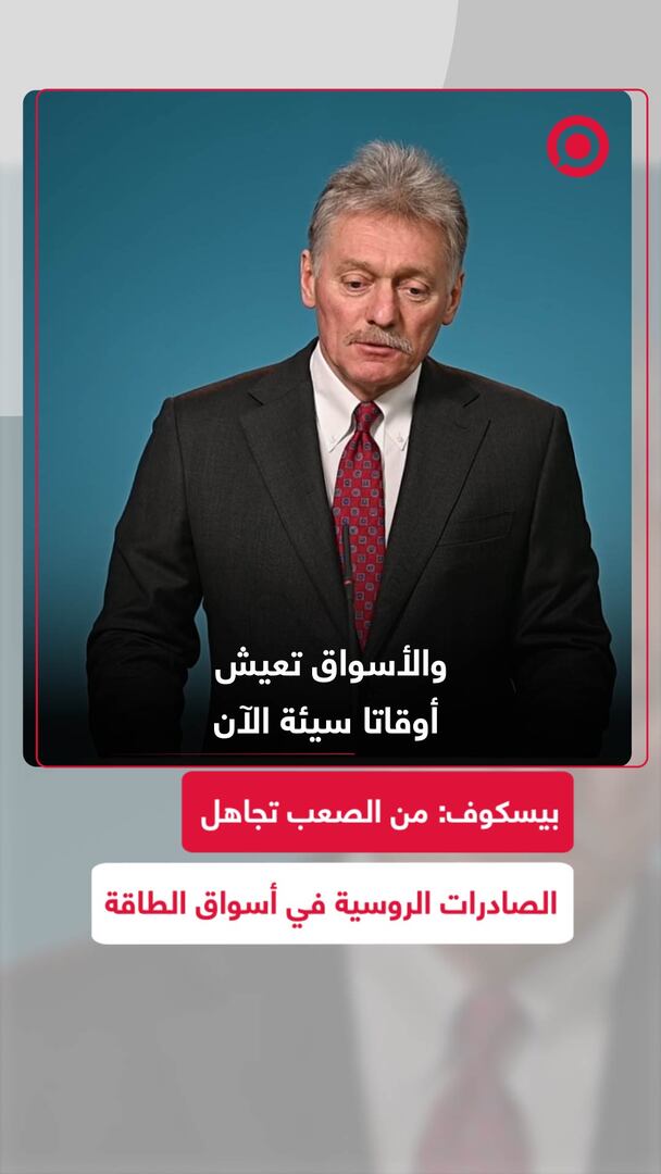 Play/Pause Mute/Unmute بيسكوف: من الصعب تجاهل الصادرات الروسية في أسواق الطاقة العالمية Save post Share Facebook X VK.com Telegram